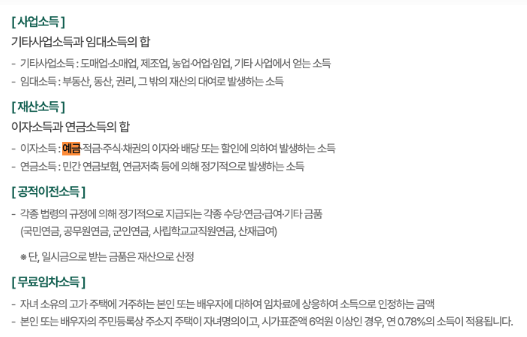 기초연금 수급자격 금융재산에 포함되는 항목은 아래와 같습니다.